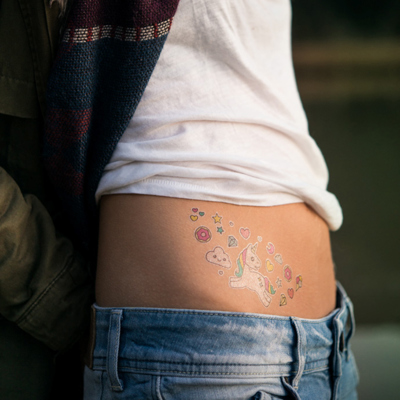 Unsere wasserübertragbaren Hauttattoos werden in Europa produziert und sind testiert nach der europäischen Kosmetikverordnung. Sie lassen sich leicht mit Creme oder Alkohol entfernen.